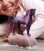 The enchanting Galaxy rainbow unicorn mare glitters like the starry sky. Strands of hair shimmer in her purple mane and thick purple tail like diamonds threaded onto a necklace. The fur on her flank and back also shines in various shades of purple. If you look closely, you can see the Milky Way. Beautiful!
