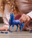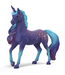 The Galaxy rainbow unicorn stallion is a majestic appearance. The fur is deep blue. On the flank and back, it shimmers like the starry sky at night. Particularly impressive, however, is the long mane, which flows luxuriantly almost to the ground. The mane and tail are coloured in shades of blue and purple. This makes him a perfect match for the northern lights that he loves so much.