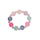 This bumpy bead bracelet is made with blue, pink, and purple frosted beads, alternating between smaller clear beads. This unique style is made perfectly for children's wrists.