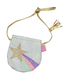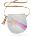 Adorable and vibrant silver purse with a fantastic Star design! It’s 5 x 5” purse size with a 12”perfectly sized golden shoulder strap with a tassel, & Velcro closure for easy fastening. Multicoloured path of the shooting star adds such a special effect to this irresistible little purse!