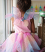 This Rainbow Fairy Dress with Wings is what real fairy dreams are made of! This is a beautiful and comfortable design, bright and sparkly with a layered skirt adorned with shimmery organza petals. Elasticized waistband adds for the comfort of movement and size flexibility. The top is made with rainbow sequinned detailing. Shimmery organza capped sleeves on soft and stretchy straps elevate this dress. The matching wings are made with a rainbow mesh fabric with a sequinned star in the center. Comfortable, machine washable, AND glitter-free this adorable soft pink ensemble will delight all little fairies for the years to come!