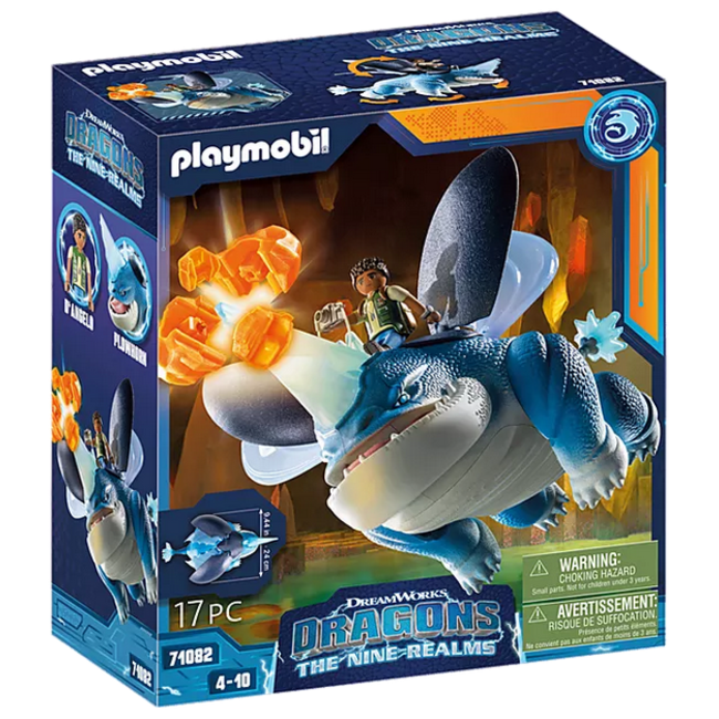 The set includes Dragons: The Nine Realms characters Tom Kullersen and his dragon Thunder with light module and shooting function, three arrows, a Viking helmet, a drone, a flashlight and other great extras.