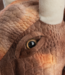 Your child will love this super cute, totally monstrous dinosaur cape! This brown, grey, and orange hand-dyed cape is made with red and brown lining. Detailed with stuffed gold and brown metallic spikes down the back. The dinosaur head has a removable mouthpiece to ensure a secure fit. This is a two-piece set - cape & claws included.