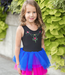 The vibrant pink and blue layers of tulle in the skirt add a playful and whimsical touch, inviting twirls and spins fit for a princess in their fairy tale. Practicality meets charm with the convenient snap closure at the crotch, ensuring easy dressing and undressing for your little one's royal escapades.