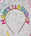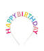 Get ready for your next party with this fun headband! With the words "Happy Birthday" in large multi-coloured lettering, this headband is sure to bring a smile to your face! It makes the perfect accessory for any fun celebration.