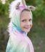 Introducing the reversible unicorn dragon of your dreams! With one side featuring a beautiful pastel rainbow unicorn and the other side featuring a fierce pastel dragon, your little one will be the talk of the town! Made with a sparkly pastel pink, purple, blue and green fabric, your child can choose between a fuzzy unicorn or our traditional embossed, crushed velvet fabric with stuffed metallic dragon horns all the way down the back. This cape will make all of your dreams come true!