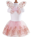 This angelic set is not only on trend but is so adorable. A soft tulle skirt is perfect for a princess with a rose gold glitter detailing gathered on an elastic waistband for size flexibility. This two piece set comes with the matching wings! Read more..