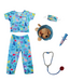 The vet is in! The adorable Veterinarian Set includes Scrubs: Shirt and Pants, Mask, Plush Puppy with removable Cone, Syringe with working plunger, Stethoscope, and a Name Card. Fully accessorized to play animal doctor your child will love taking care of plush animals! Taking care of your stuffed animals is the perfect way to nurture and develop compassion in young children, and it’s a fun and engaging way when suited up with these colourful animal print scrubs and realistic-looking accessories. The scrubs are machine washable, made with high-quality fabrics, and durable construction on the accessories will ensure that your child will enjoy playing the veterinarian for the years to come!