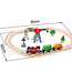 People are waiting for their cargo! Use the magnetic crane to load containers onto the train. Then press the button on the engine to drive around the oval track and make deliveries.