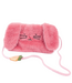This hot pink fluffy purse is shaped like a sweet bunny, complete with ears you can wear up or down. Flip the ears up to reveal a charming spring-inspired pattern that adds an extra pop of fun and whimsy.