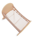 The Kinderfeets Doll Crib is a classic wooden bed with 100% cotton bedding that provides a comfy, snuggly space for favorite dolls and stuffed animals.