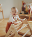 The SMALL Pikler Triangle is the most compact of the climbing triangles and features climbing dowels on 2 sides.