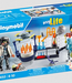 Dive into the exciting world of research and robotics with the PLAYMOBIL Researchers with Robots Gift Set. Thanks to the stylish packaging, not only can you save on gift wrap, but you can also throw a cool science-themed party. The researcher is celebrating their birthday in the lab, and their robot friends are ready to rock the party. The drone delivers a delicious cake, while the mini-robots show up with muffins, and the big robot proudly holds the party balloon. The small drone, with its rotating rotor blades, is a true flying marvel and can be controlled remotely. The frame is easily attached to the bottom of the drone. The versatile robot can stand or sit, move its arms at the shoulders, and its hands can be rotated in all directions. When it needs to sit, just flip the leg part up. With this gift set, exploring science becomes child's play. A fantastic surprise for science-loving kids aged 4 and up.