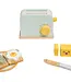 This delightful 9-piece wooden set includes all the fixings for a perfect playtime morning feast: a toaster, 2 slices of toast, a butter knife, a sliced avocado, an egg, 2 butter pieces, and a plate.