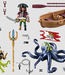 The leader of the Deepers, a human Kraken, possesses a mighty trident with a magical compass. Deepers and monster octopus fight side by side against the pirate who has stood in their way with his boat and cannon. It is no easy task to dodge the water splashes from the sea monster's tentacles. Includes a real water-spraying feature.