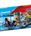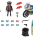Under the cover of darkness, a pickpocket has broken into an ATM, now he flees with the prey. But a fast police officer has already taken up pursuit with his motorcycle. This thief will not get far! The playset contains two PLAYMOBIL figures, a motorcycle, an ATM, a crowbar, a sack, banknotes and many other extras.