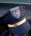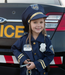 Police officer set includes: Jacket, Hat, Handcuffs, Walkie Talkie, Badge, and Name Badge.