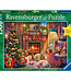 Its the night before Christmas and while everyone is asleep in their beds these cats and dogs are enjoying a mesmerizing evening in front of the fire! Have fun assembling this 1500 piece Ravensburger Christmas Edition puzzle.