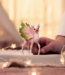 The magical fawn looks simply adorable. Its coat is pink; only the legs and chest are bright white. It has large, pink wings with green tips on its back. If you look closely, you can see the tiny antlers on its head. Read more..