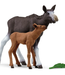 1x Moose, 1x Moose Calf, 1x tuft of grass